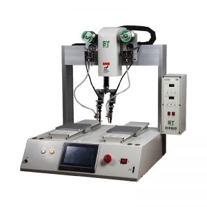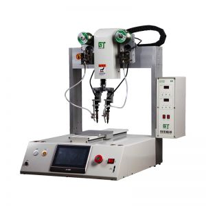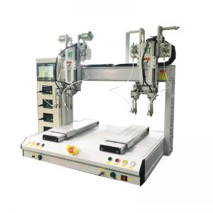 該設(shè)備由1臺雙頭自動(dòng)焊錫機(jī)和兩個(gè)翻轉(zhuǎn)機(jī)構(gòu)及三個(gè)移載機(jī)構(gòu)組合而成的自動(dòng)化焊錫工作站,可以根據(jù)需要設(shè)置相應(yīng)的設(shè)備工位,可改變產(chǎn)品的軌道傳送方向,可對產(chǎn)品進(jìn)行任何角度的旋轉(zhuǎn),適合對產(chǎn)品不同方向進(jìn)行焊接,從而大大提升了產(chǎn)能,其還可銜接方向不同、高低不同的傳送軌道,靈活組合,節(jié)約占地空間,有利于工業(yè)自動(dòng)化發(fā)展,成本低,效率高,通用性強(qiáng)。